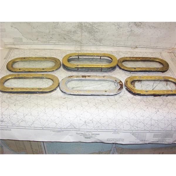 Boaters’ Resale Shop of TX 2202 1577.05 VENTURE 23 PORTLIGHT SET OF SIX * APPROX. OVERALL DIMENSIONS: 4-5/8" H x 9-3/4" W * APPROX. INSIDE DIMENSIOHS:2-3/4" H x 9" W * TWO GLASS PIECES ARE CRACKED * SEE ALL 6 PHOTOS * SOLD AS PICTURED * MOUNTING HARDWARE NOT INCLUDED * ITEM WAS PRE-OWNED, USED, TWO GLASS PIECES ARE CRACKED BUT APPEAR TO BE OPERATING PROPERLY BUT HAS NOT BEEN TESTED FURTHER