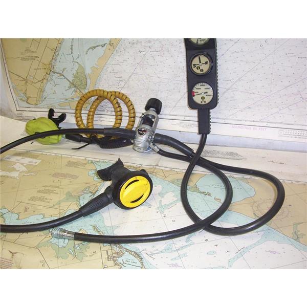 Boaters’ Resale Shop of TX 2203 0755.24 AQUA LUNG TITAN SCUBA REGULATOR OCTOPUS with 2 MOUTHPIECES (RACOR & SHERWOOD) & GAUGES * "FB3719" "0078" & "EN 250" STAMPED ON REGULATOR * SEE ALL 4 PHOTOS * SOLD AS PICTURED * ITEM WAS PRE-OWNED, USED, IN FAIR PHYSICAL CONDITION AND APPEARS TO BE OPERATING PROPERLY BUT HAS NOT BEEN TESTED