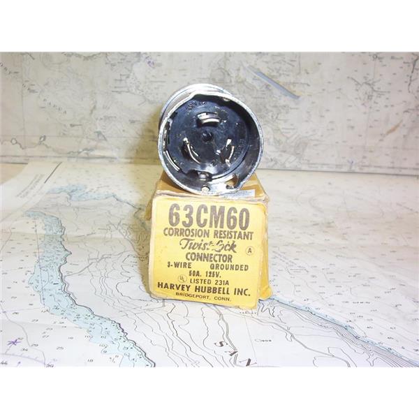 Boaters’ Resale Shop of TX 2203 2525.07 HUBBELL 50 AMP 125 VOLT MALE PLUG 63CM60 * 3 WIRES GROUNDED * CORROSION RESISTANT * TWIST & LOCK * SEE ALL 4 PHOTOS * SOLD AS PICTURED * ITEM WAS PRE-OWNED, APPEARS TO HAVE NEVER BEEN USED/INSTALLED, IN GOOD PHYSICAL CONDITION BUT HAS NOT BEEN TESTED