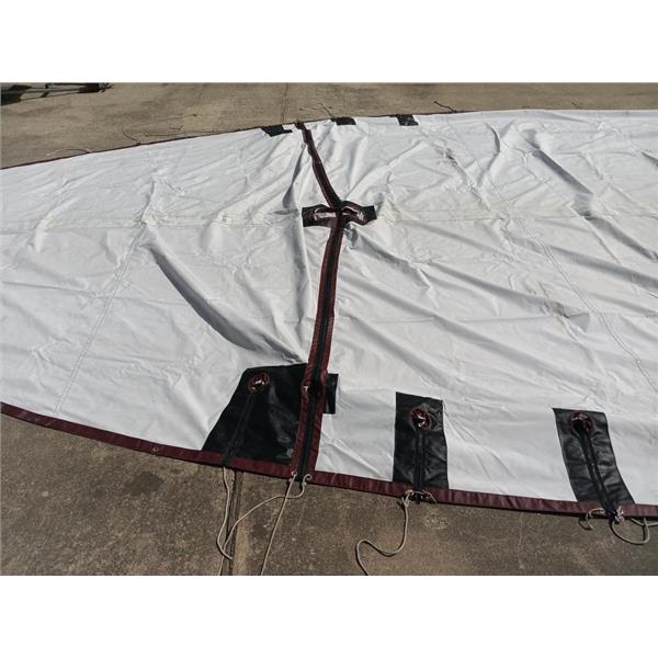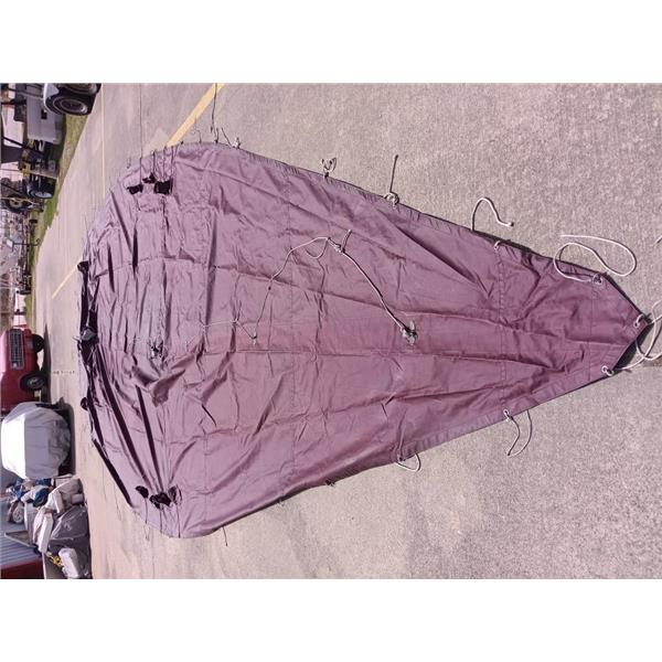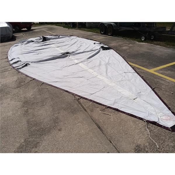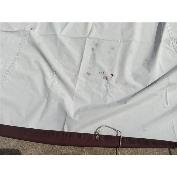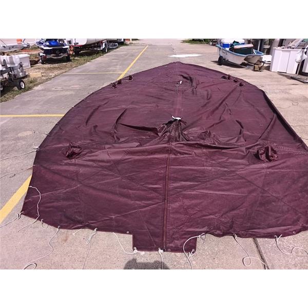 Boaters' Resale Shop of TX 2206 0721.01 CALIBER 38 FULL BOAT BURGUNDY COVER * APPROX. OVERALL DIMENSIONS OF 4 PIECE COVER: BEAM: 15' x 36' LENGTH * SEE ALL 10 PHOTOS & DETAILS * SOLD IN CONDITION PICTURED * ITEM WAS PREOWNED, USED, SHOWS TYPICAL SIGNS OF MINOR STAINING, WET BLEEDING, A FEW SMALL HOLES WITH WEAR FROM USE AND WEATHER BUT IS IN FAIR NAUTICAL PHYSICAL CONDITION AND APPEARS TO BE OPERATING PROPERLY BUT HAS NOT BEEN TESTED FURTHER * YELLOW SAIL BAG INCLUDED