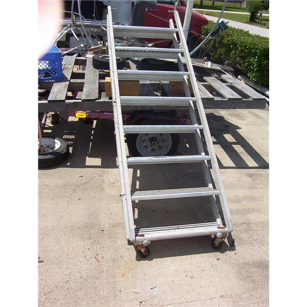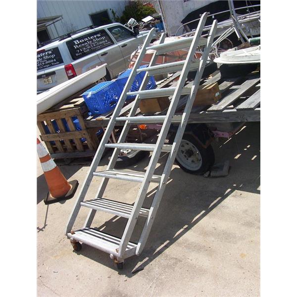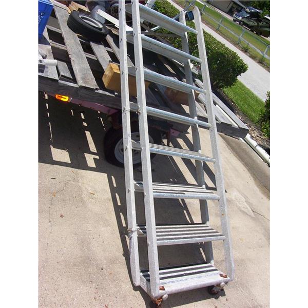 Boaters’ Resale Shop of TX 2206 0727.04 MARQUIPT 8 STEP BOARDING STAIRS ONLY * MISSING 2 WHEELS * LOCAL PICKUP ONLY OR FREIGHT SHIPPING (CONATCT US FOR ASSISTANCE) * SEE ALL 7 PHOTOS * SOLD AS PICTURED * ITEM WAS PRE-OWNED, USED, IN FAIR PHYSICAL CONDITION, MISSING 2 WHEELS BUT APPEARS TO BE OPERATING PROPERLY AND HAS NOT BEEN TESTED FURTHER