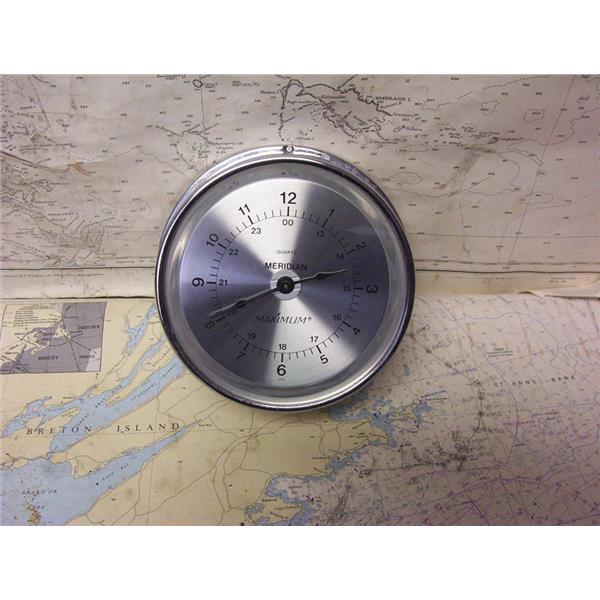 Boaters’ Resale Shop of TX 2208 0822.01 MAXIMUM MERIDIAN QUARTZ 5-1/2" CLOCK * APPROX. OVERALL DIAMETER: 6-1/2" * APPROX. FACE DIAMETER: 5-1/2" * USES ONE AA BATTERY NOT INCLUDED * SEE ALL 4 PHOTOS * SOLD AS PICTURED * ITEM WAS PRE-OWNED, USED, IN GOOD PHYSICAL CONDITION AND APPEARS TO BE OPERATING PROPERLY BUT HAS NOT BEEN TESTED FURTHER