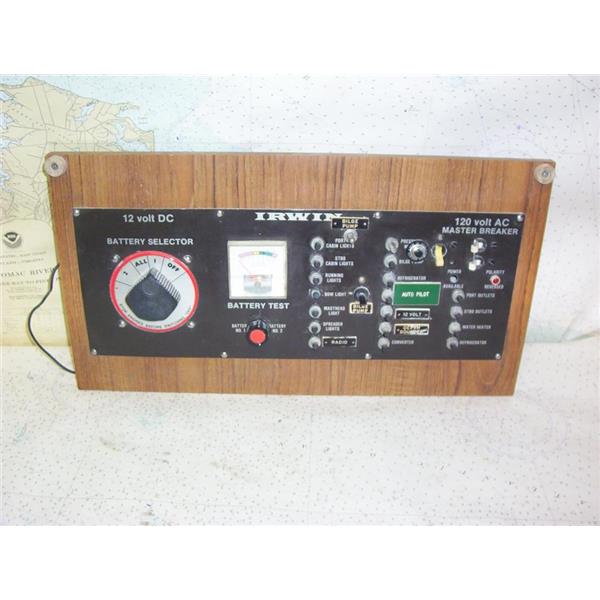 Boaters’ Resale Shop of TX 2208 1745.48 IRWIN AC/DC ELECTRICAL PANEL 11" x 20" * APPROX. OVERALL DIMENSIONS: 11" H x 20" W * APPROX. PANEL ONLY DIMENSIONS: 7" H x 18-1/4" W * SEE ALL 6 PHOTOS * SOLD AS PICTURED * ITEM WAS PRE-OWNED, USED, WEATHERED AND HAS NOT BEEN TESTED