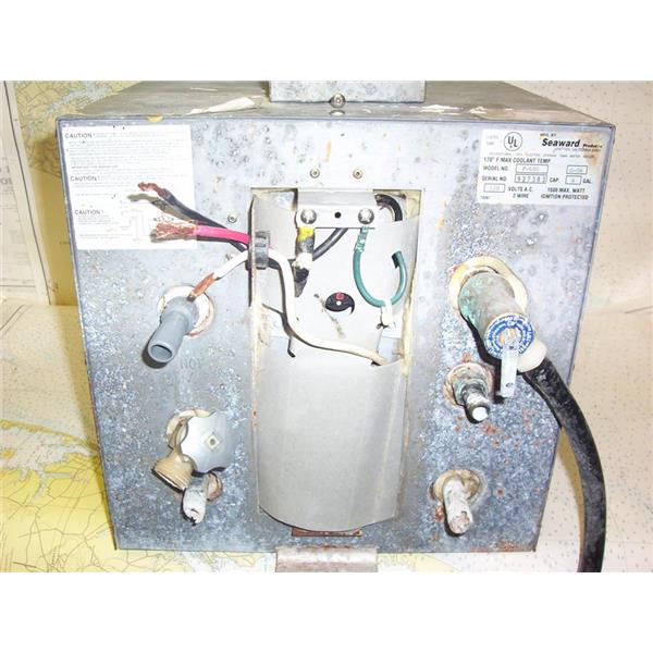 Boaters’ Resale Shop of TX 2208 2452.01 SEAWARD F600 SIX GALLON WATER HEATER with HEAT EXCHANGER * Capacity: 6 Gal., Orientation: Horizontal, Tank Material: Aluminum * APPROX. Dimensions: 13" W x 13" H x 19" D, Exterior: Galvanized Steel * SEE ALL 5 PHOTOS * SOLD AS PICTURED * ITEM WAS PRE-OWNED, USED, IN FAIR PHYSICAL CONDITION AND APPEARS TO BE OPERATING PROPERLY, POWERS UP, HEATING ELEMENT HEATS UP BUT HAS NOT BEEN TESTED FURTHER