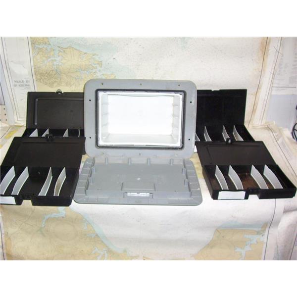 Boaters’ Resale Shop of TX 2208 2772.04 FLUSH MOUNT BUILT-IN TACKLE BOX/STORAGE (EMPTY) * APPROX. CUT-OUT DIMENSIONS: 7-1/4" D x 8-1/2" L x 12" W * APPROX. ABOVE DECK DIMENSIONS: 10-3/4" x 15" * 4 EMPTY CONTAINERS INCLUDED * SEE ALL 6 PHOTOS * SOLD AS PICTURED * ITEM WAS PRE-OWNED, USED, IN FAIR PHYSICAL CONDITION AND APPEARS TO BE OPERATING PROPERLY BUT HAS NOT BEEN TESTED FURTHER