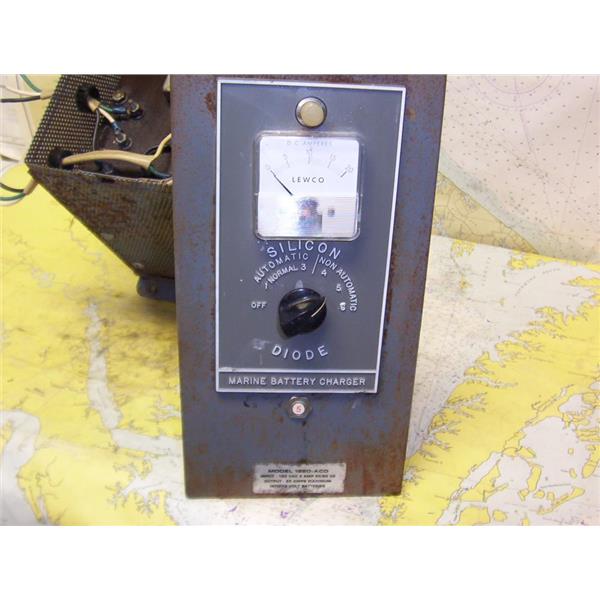 Boaters’ Resale Shop of TX 2209 1445.37 LEWCO 1220 MARINE 20 AMP BATTERY CHARGER * "INPUT: 120 VOLTS AC (4 AMPS) * OUTPUT: 13 VOLT DC @ 20 AMPS * APPROX. DIMENSIONS: 6" W x 9" H x 13" L * SEE ALL 5 PHOTOS * SOLD AS PICTURED * ITEM WAS PRE-OWNED, USED, WEATHERED BUT IS IN FAIR PHYSICAL CONDITION AND APPEARS TO BE OPERATING PROPERLY, POWERS UP, CONTROLS and GAUGE WORKS AND CHARGE VOLTAGE IS PRESENT ON ALL 3 BANKS BUT HAS NOT BEEN TESTED FURTHER