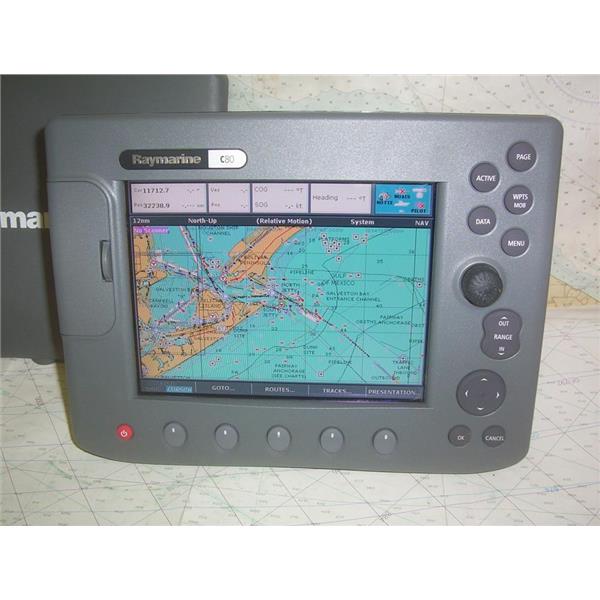 Boaters’ Resale Shop of TX 2205 2442.04 RAYMARINE CLASSIC C80 MULTI DISPLAY WITH SUNCOVER ONLY * MULTI-FUNCTION NAV DISPLAY VERSION: 5.16 * CABLES, RADOME & CHARTS CARDS NOT INCLUDED * SEE ALL 7 PHOTOS * ITEM WAS PRE-OWNED, USED, IN FAIR PHYSICAL CONDITION AND APPEARS TO BE OPERATING PROPERLY, POWERS UP, CONTROLS WORK & DISPLAYS CHART CARD DATA BUT HAS NOT BEEN TESTED FURTHER