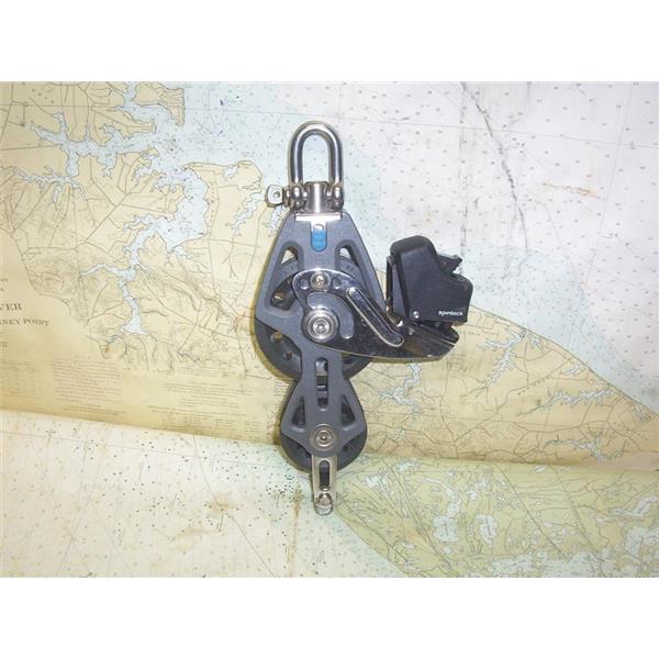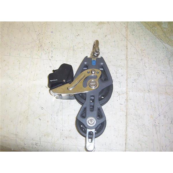 Boaters’ Resale Shop of TX 2210 1124.11 LEWMAR FIDDLE BLOCK, BECKET & SPINLOCK ROPE CLUTCH FOR 9/16" LINE MAX * 1/2" OPTIMUM ROPE DIAMETER * SPINLOCK ROPE CLUTCH RANGE:5/16"-7/16" (8-12mm)* LOCKING & SWIVEL SHACKLE * SHEAVE MAX SAFE LOAD: 2000 KGS * APPROX. OVERALL DIMENSIONS: 1-1/2" T x 6" W x 10-1/2" L * SEE ALL 7 PHOTOS * SOLD AS PICTURED * ITEM WAS PRE-OWNED, USED, IN GOOD PHYSICAL CONDITION AND APPEARS TO BE OPERATING PROPERLY BUT HAS NOT BEEN TESTED FURTHER