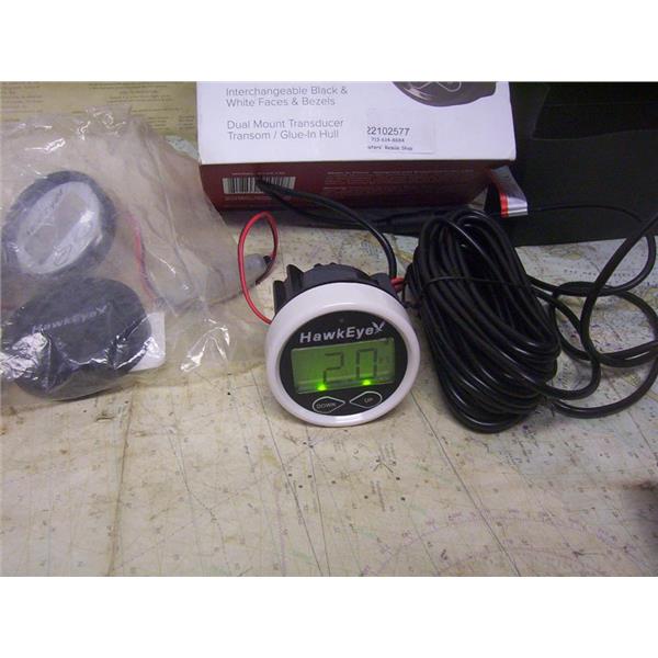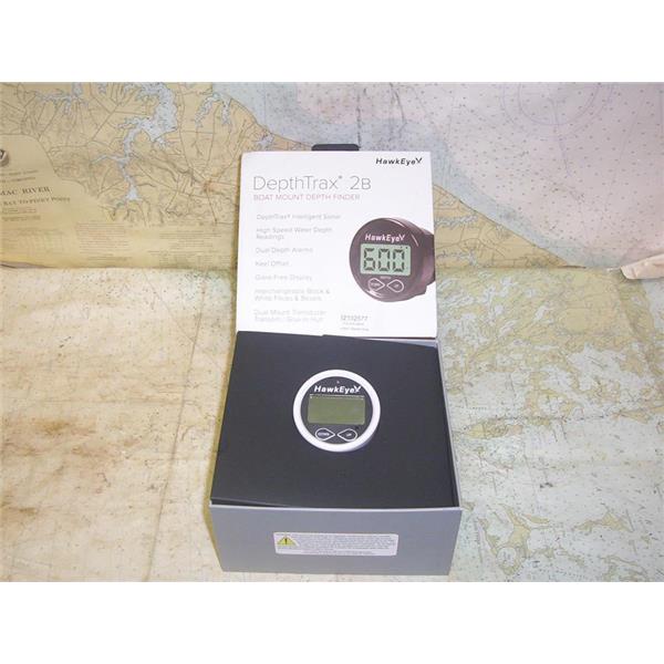 Boaters’ Resale Shop of TX 2210 2577.01 HAWKEYE DEPTHTRAX 2B DEPTH FINDER KIT * DISPLAY, TRANSDUCER and CABLES INCLUDED * SEE ALL 5 PHOTOS * SOLD AS PICTURED * ITEM WAS PRE-OWNED, IN ORIGINAL BOX & PACKING, IN GOOD CONDITION, APPEARS TO BE OPERATING PROPERLY, DISPLAY POWERS UP, CONTROLS WORK, TRANSDUCER CLICKS BUT HAS NOT BEEN TESTED FURTHER