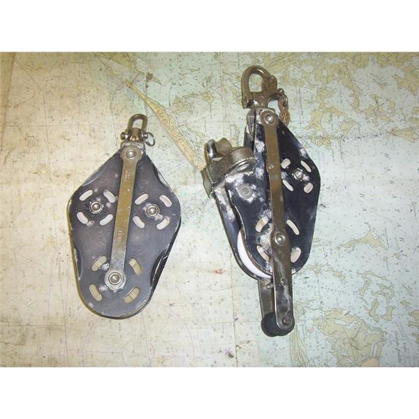 Boaters’ Resale Shop of TX 2210 2755.15 FICO 4 to 1 LARGE BOAT VANG BLOCK SET FOR 1/2" LINE * LINE NOT INCLUDED * BLOCKS INCLUDED: FICO FIDDLE BLOCK with BECKET, CAM CLEAT & SNAP SHACKLE FOR 1/2" LINE * FICO FG1135 FIDDLE BLOCK with SWIVEL SHACKLE * SEE ALL 5 PHOTOS * SOLD AS PICTURED * ITEM WAS PRE-OWNED, USED, HAS SOME CORROSION BUT IS IN FAIR PHYSICAL CONDITION AND APPEARS TO BE OPERATING PROPERLY BUT HAS NOT BEEN TESTED FURTHER