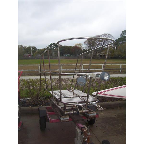 Boaters’ Resale Shop of TX 2211 0472.87 LARGE 10 FOOT BOW SPRIT with PLATFORM & ANCHOR ROLLER ASSEMBLY * APPROX. OVERALL DIMENSIONS: WIDTH: 3-1/2 ft. x 4 ft. x 10 ft * LARGE (7ft.)TURNBUCKLE with 3/4" PINS & TWO 35" CHAIN PLATES INCLUDED * LOCAL PICKUP ONLY OR FREIGHT SHIPPING (CONTACT US FOR ASSISTANCE) * SEE ALL 8 PHOTOS * TRAILER NOT INCLUDED * ITEM WAS PRE-OWNED, USED, IN FAIR PHYSICAL CONDITION AND APPEARS TO BE OPERATING PROPERLY BUT HAS NOT BEEN TESTED FURTHER
