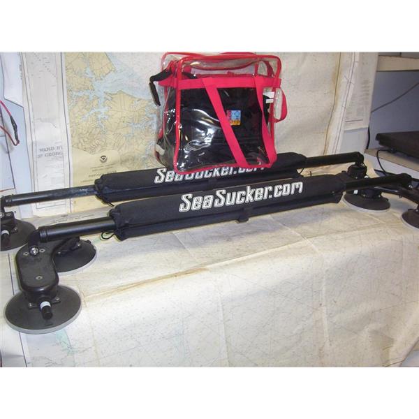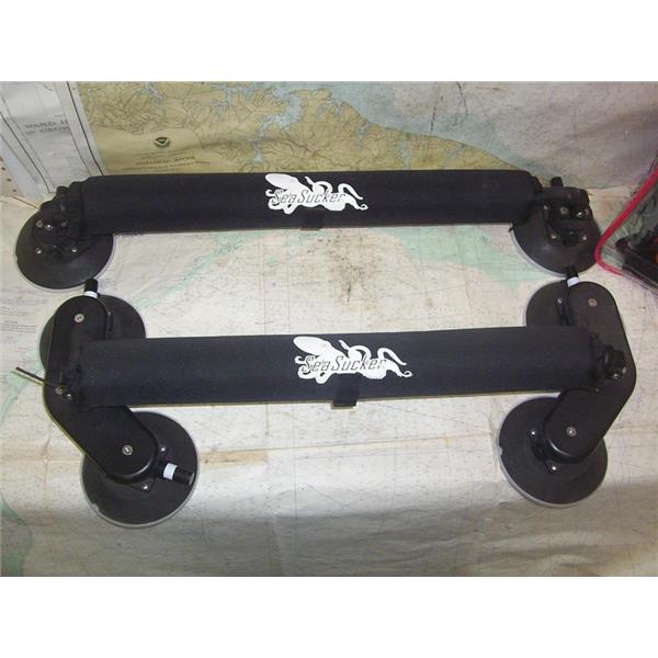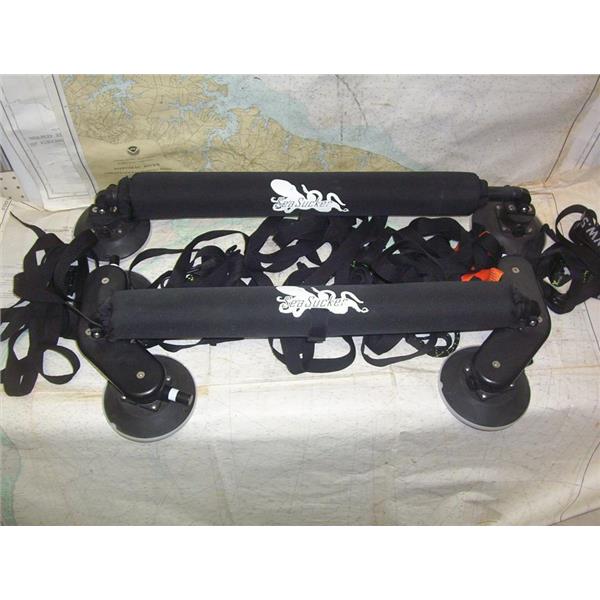 Boaters’ Resale Shop of TX 2211 1255.01 SEA SUCKERS BOARD RACK ASSEMBLY * (2) 31" crossbars. Front bar has (4) 6" vacuum mounts and the back has (2). Set of bar pads * Set of 10' nylon cam-buckle straps * SEE ALL 4 PHOTOS * SOLD AS PICTURED * ITEM WAS PRE-OWNED, USED, IN FAIR PHYSICAL CONDITION AND APPEARS TO BE OPERATING PROPERLY BUT HAS NOT BEEN TESTED FURTHER