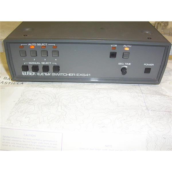 Boaters’ Resale Shop of TX 2212 2155.15 ELBEX EXS41 CCTV SWITCHER CAMERA CONTROL BOX with 115 VOLTS AC CORD & CUSTOM MOUNTING BRACKETS ONLY * OTHER CABLES NOT INCLUDED * SEE ALL 4 PHOTOS * SOLD AS PICTURED * ITEM WAS PRE-OWNED, USED, IN FAIR PHYSICAL CONDITION AND APPEARS TO BE OPERATING PROPERLY, POWERS UP AND CONTROLS WORK BUT HAS NOT BEEN TESTED FURTHER