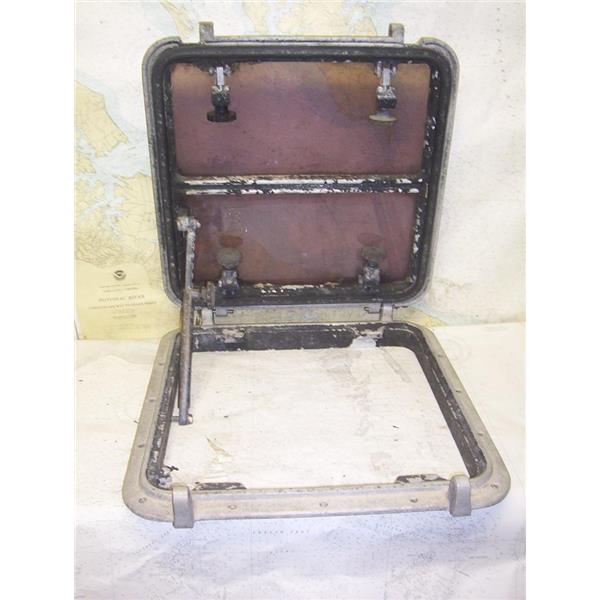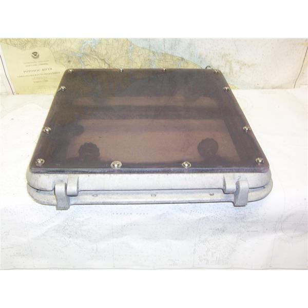 Boaters’ Resale Shop of TX 2212 3127.30 BOMAR TINTED CAST ALUMINUM 19" x 19" HATCH with DAMAGED STRUT HOLDER ASSEMBLY * APPROX. OVERALL DIMENSIONS: 3-1/2" H x 19" W x 20" D * ABOVE DECK HEIGHT: 2-3/4" * APPROX. CUT-OUT DIMENSIONS: 1" H x 16-1/2" W x 16-1/2" D * SEE ALL 6 PHOTOS * SOLD AS PICTURED * ITEM WAS PRE-OWNED, USED, CAST ALUMINUM STRUT HOLDER IS BROKEN & IS IN FAIRLY WEATHERED PHYSICAL CONDITION BUT IT CAN STILL OPEN, CLOSE & LOCK