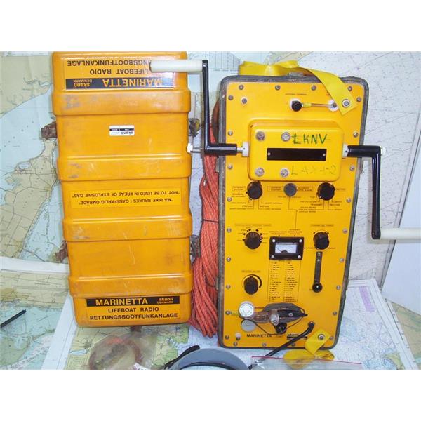 Boaters’ Resale Shop of TX 2302 5147.01 MARINETTA skanti TPR1 SURVIVAL RADIO * Skanti Marinetta TRP1 survival radio * WIRED HEADSET, ANTENNA, CRANK HANDLES, MANUAL & HARD CASE * VINTAGE & UNTESTED LIFEBOAT RADIO ASSEMBLY * APPROX. WEIGHT: 40 LBS. * APPROX. OVERALL DIMENSIONS: 10" W x 11" D x 23" L * SEE ALL 8 PHOTOS * SOLD AS PICTURED * ITEM WAS PRE-OWNED, USED, VINTAGE & UNTESTED BUT DOES MAKE NOISE IN HEADSET WHEN HANDLES ARE TURNED BUT HAS NOT BEEN TESTED FURTHER