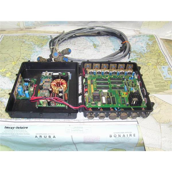 Boaters’ Resale Shop of TX 2303 1171.01 KOBELT AUTOPILOT STEERING CONTROL TRANSFER BOX MODEL 7173-TX-SPEC * 5 PLUGS & CUT CABLES INCLUDED * SEE ALL 5 PHOTOS * SOLD AS PICTURED * ITEM WAS PRE-OWNED, USED, SCREWS ARE NOT ORIGINAL AND UNIT IS IN FAIR PHYSICAL CONDITION BUT HAS NOT BEEN TESTED
