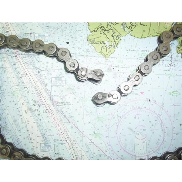 Boaters’ Resale Shop of TX 2305 0224.21 EDSON MARINE STEERING 2.5' ROLLER CHAIN with CABLE ADAPTERS ONLY * Roller Chain Size:#50 - 5/8-inch * Connector Type:#635 Stainless Adapter * Length of Chain: 2.5 ft / .75 m * Diameter of Wire Accepted: 1/4-inch / 6.4 mm * CABLES NOT INCLUDED * SEE ALL 5 PHOTOS * SOLD AS PICTURED * ITEM WAS PRE-OWNED, USED, IN FAIR PHYSICAL CONDITION AND APPEARS TO BE OPERATING PROPERLY BUT HAS NOT BEEN TESTED FURTHER