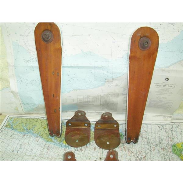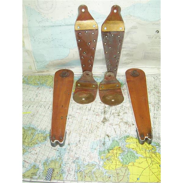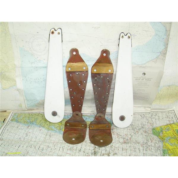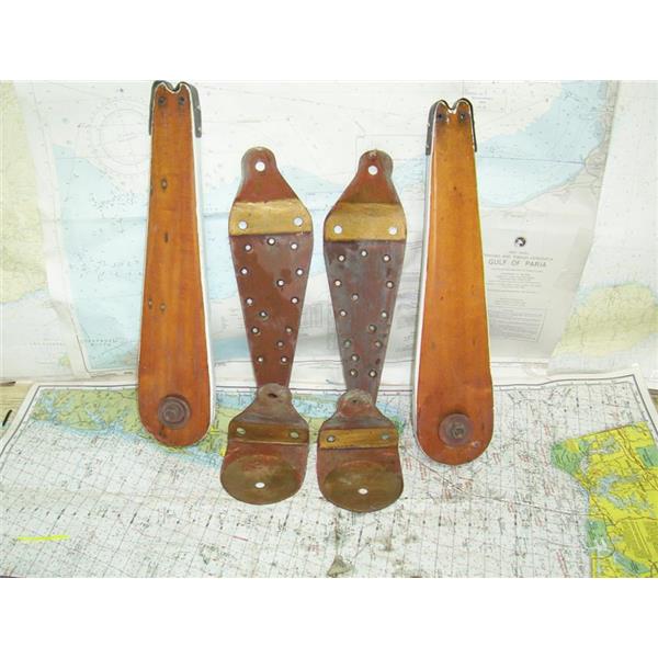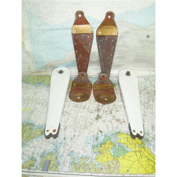 Boaters’ Resale Shop of TX 2305 2547.02 WOODEN 19" SPEADERS & BRONZE BRACKET SET * APPROX. OVERALL SPREADER DIMENSIONS(EACH): 1.25" T x 4" W x 19" L * APPROX. LENGTH FROM NUT & BOLT TO END: 17" * PAIR OF BRONZE BRACKETS(4) * SEE ALL 5 PHOTOS * SOLD AS PICTURED * ITEM WAS PRE-OWNED, USED, IN FAIR PHYSICAL CONDITION AND APPEARS TO BE OPERATING PROPERLY BUT HAS NOT BEEN TESTED FURTHER