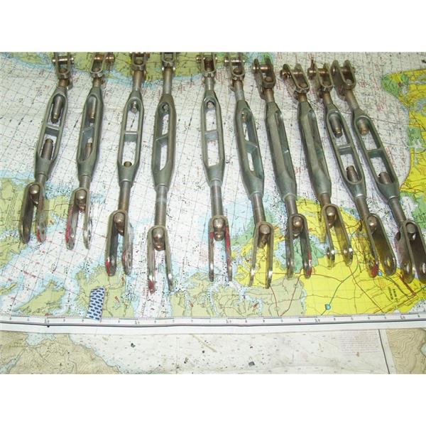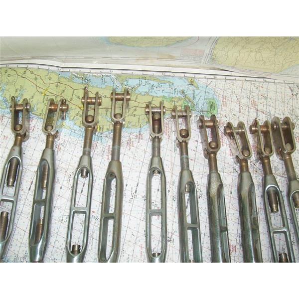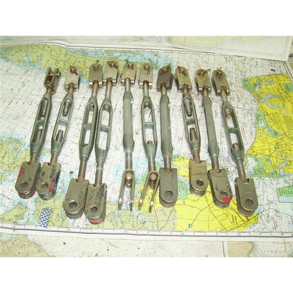 Boaters’ Resale Shop of TX 2307 5122.01 HAYN 58TFBJ TEN TURNBUCKLES w/ 5/8" PIN * TEN PACK OF HAYN MARINE CHROME PLATED BRONZE OPEN BODY TURNBUCKLES with 5/8" PINS * APPROX. BODY LENGTH: 8" * SEE ALL 5 PHOTOS * SOLD AS PICTURED * ITEM WAS PRE-OWNED, USED, IN FAIR PHYSICAL CONDITION AND APPEARS TO BE OPERATING PROPERLY BUT HAS NOT BEEN TESTED FURTHER
