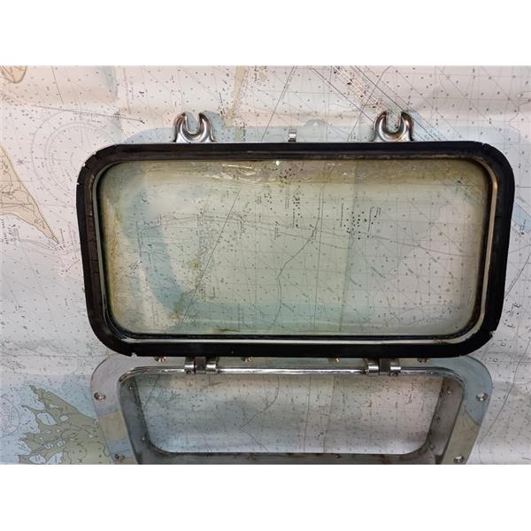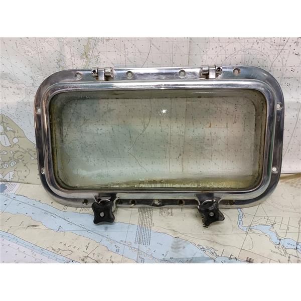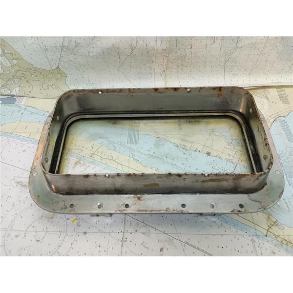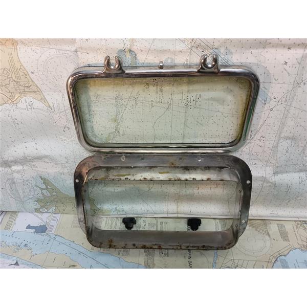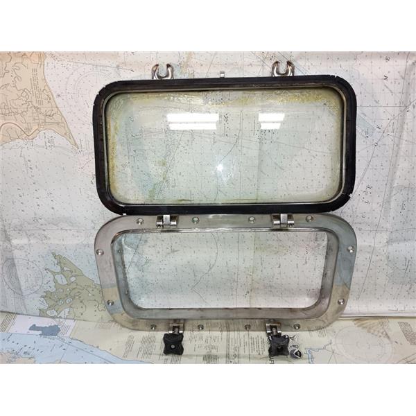 Boaters' Resale Shop of TX 2307 5142.01 ABI 10" x 17" SS RETANGULAR OPENING PORTLIGHT with ANGLED SPIGOT * TRIM RING NOT INCLUDED * APPROX. OVERALL DIMENSIONS: 3.5" D x 10" H x 17" W * APPROX. CUT-OUT DIMENSIONS: 7.25" x 14.25" * SEE ALL 7 PHOTOS * SOLD AS PICTURED * TRIM RING NOT INCLUDED * ITEM WAS PRE-OWNED, USED, ADHESIVE IS ON THE GLASS & THE GASKET IS DRIED-UP AND WILL NEED REPLACING BUT THE FRAME IS IN FAIR PHYSICAL CONDITION AND APPEARS TO BE OPERATING PROPERLY BUT HAS NOT BEEN TESTED FURTHER