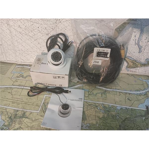 Boaters' Resale Shop of TX 2309 2157.05 KJM MINI HD DOME CAMERA KIT KJM-C55 with 25m VIDEO CABLE KJM-COMB-25 * KJM MARINE KJM-C55 1000 TVL Camera/Mini Dome * KIT INCLUDES: 1000 TVL MINI DOME CAMERA, INSTRUCTIONS, COMBO 25m POWER(DC) CABLE & VIDEO CABLE KJM-COMB-25 * SEE ALL 5 PHOTOS * SOLD AS PICTURED * ITEM WAS PRE-OWNED, IN ORIGINAL BOX & PACKING, IN GREAT PHYSICAL CONDITION AND APPEARS TO HAVE NEVER BEEN INSTALLED OR DEPLOYED AND HAS NOT BEEN TESTED