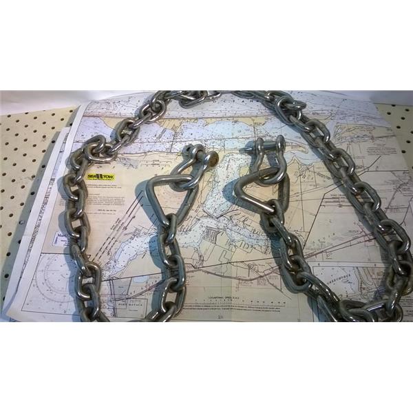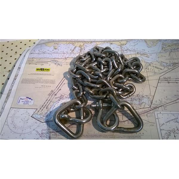 Boaters' Resale Shop of TX 2309 2241.02 LIFTING BRIDLE of 6 FT OF 3/8" SS CHAIN * LIFTING BRIDLE MADE OF SIX FOOT OF 3/8" STAINLESS STEEL CHAIN with 2 SHACKLES & 2 TRIANGLES * SEE ALL 6 PHOTOS * SOLD AS PICTURED * ITEM WAS PRE-OWNED, USED, IS IN FAIRLY GOOD PHYSICAL CONDITION AND APPEARS TO BE OPERATING PROPERLY BUT HAS NOT BEEN TESTED FURTHER