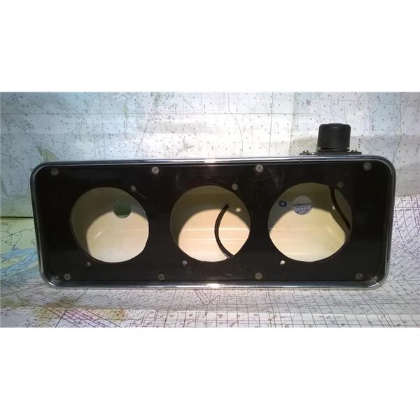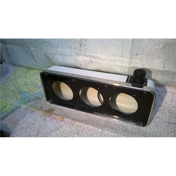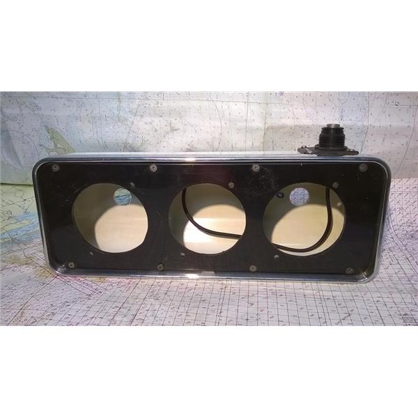 Boaters' Resale Shop of TX 2310 1755.17 DISPLAY HOUSING FOR 9.5" PEDESTAL GUARD * METALLIC INSTRUMENT 6" x 16" HOUSING POD FOR 3 DISPLAYS with THREE 3.5" DIAMETER CUT-OUTS * APPROX. OVERALL DIMENSIONS: 305" D x 6" H x 16" l * 8 SECURITY SCREWS & UNTESTED STANDARD HORIZON RAM MIC PLUG (with cut cable) & CLIP INCLUDED * SEE ALL 6 PHOTOS * SOLD AS PICTURED * ITEM WAS PRE-OWNED, USED, IS IN FAIRLY GOOD PHYSICAL CONDITION AND APPEARS TO BE OPERATING PROPERLY BUT REMOTE MIC PLUG HAS NOT BEEN TESTED