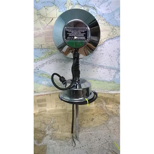 Boaters' Resale Shop of TX 2401 1171.01 PERKO SOLAR RAY MARINE 24VDC SEARCHLIGHT 0314 * BELOW DECK LOWER MANUAL HANDLE(CONTROL) MECHANISM IS MISSING * PERKO MARINE MANUAL PILOT HOUSE CONTROL SEARCHLIGHT with 28 VOLT DC, 450 WATT, 7" GE BULB PN:4541(Lamps for Aircraft Landing & Taxi Lights) * SEE ALL 6 PHOTOS * SOLD IN CONDITION PICTURED * ITEM WAS PREOWNED, USED, MISSING THE BELOW DECK CONTROL ASSEMBLY BUT IS IN FAIRLY GOOD PHYSICAL CONDITION AND BULB & UPPER MANUAL MECHANISM BOTH APPEAR TO BE OPERATING PROPERLY BUT HAS NOT BEEN TESTED FURTHER