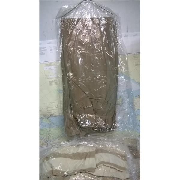 Boaters' Resale Shop of TX 2401 2575.34 MAINSHIP 40 TAN BEDDING & SALON DRAPES * ORIGINAL QUEEN SIZE (TAN, FLORAL, NOBLE EXCELLENCE) BED SPREAD with 2 PILLOW SHAMS, 2 PILLOW COVERS & SALON DRAPES (with LINING)FOR A MAINSHIP 40 * SEE ALL 5 PHOTOS * SOLD IN CONDITION PICTURED * ITEM WAS PREOWNED, USED, IS IN FAIRLY GOOD PHYSICAL CONDITION AND APPEARS TO HAVE BEEN STOWED AWAY AFTER BEING DRY CLEANED