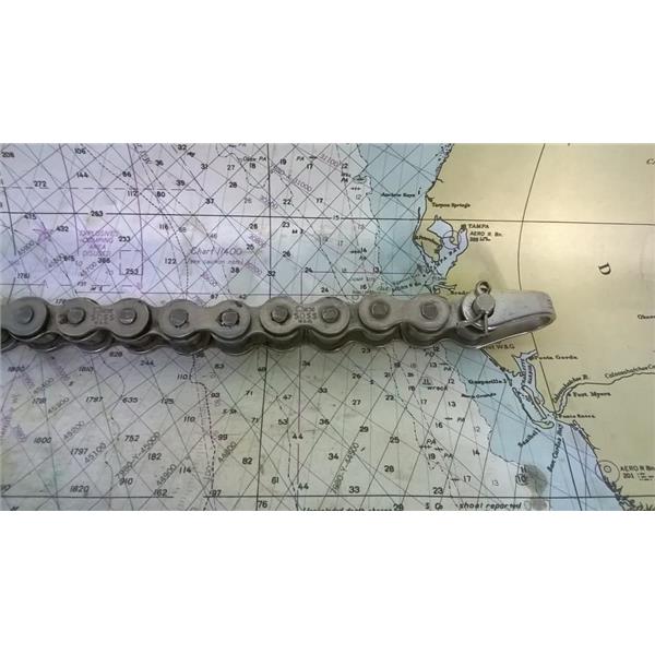 Boaters’ Resale Shop of TX 2403 2822.05 EDSON MARINE STEERING 18" ROLLER CHAIN with SCHAEFER CABLE ADAPTERS ONLY * Roller Chain Size:#50 - 5/8-inch * CABLES NOT INCLUDED * SEE ALL 5 PHOTOS * SOLD AS PICTURED * ITEM WAS PRE-OWNED, USED, IN FAIR PHYSICAL CONDITION AND APPEARS TO BE OPERATING PROPERLY BUT HAS NOT BEEN TESTED FURTHER