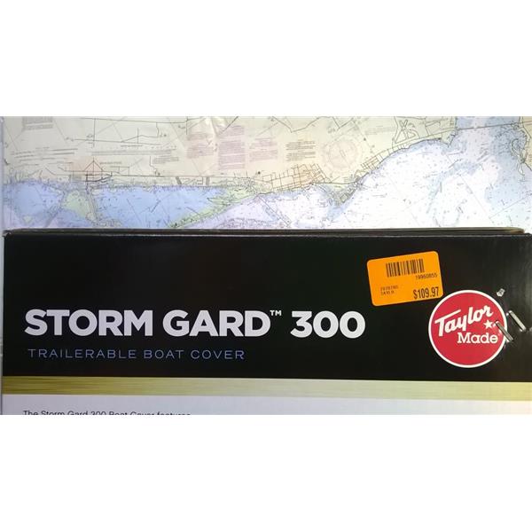 Storm Gard 300 Trailerable Boat Covers can stand up to the most challenging conditions you're trailering habits can dish out. With four-ply folded seams and double-folded hems, there is no tearing at the edges. A shock cord in the hem creates a snug fit. And now each cover comes with a convenient storage bag and tiedowns! Sizes to fit most boats.