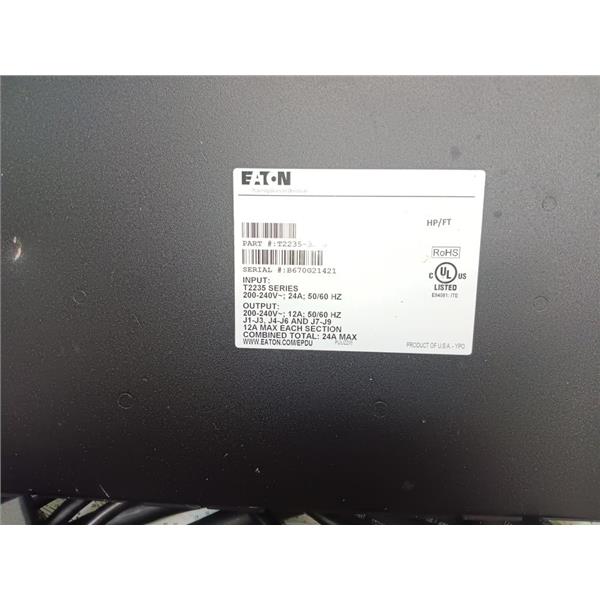 Boaters' Resale Shop of TX 2407 1255.04 EATON T2235-3209 POWER DISTRIBUTION UNIT with TWO(PRIMARY & SECONDARY) 9 FOOT 30 AMP 250 VOLT AC CABLES and FOUR 48" VOLEX 72-4161-01 CISCO EXTENSION CABLE/POWER CORDS with C14-15 CONNECTORS * SEE ALL 6 PHOTOS * SOLD IN CONDITION PICTURED * ITEM WAS PREOWNED, USED, IS IN FAIRLY GOOD PHYSICAL CONDITION BUT HAS NOT BEEN TESTED
