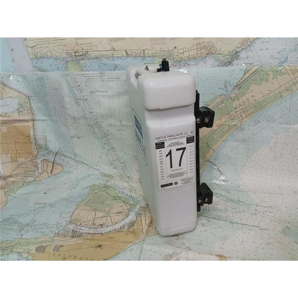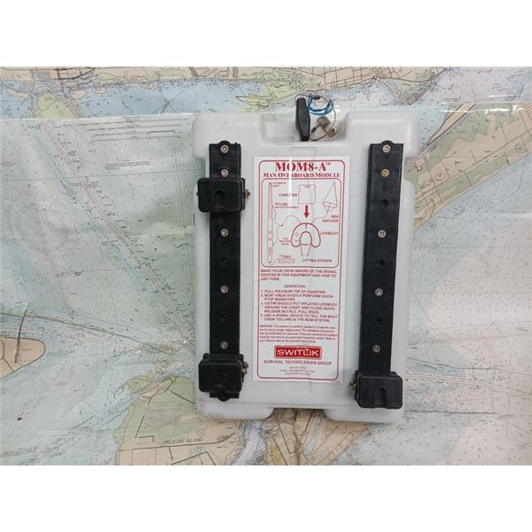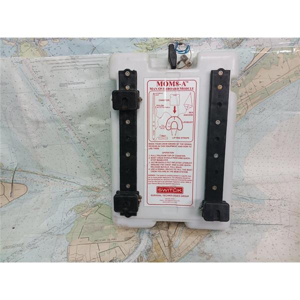 Boaters' Resale Shop of TX 2407 1724.62 SWITLIK MAN OVERBOARD MODULE MOM8-A PN: 800010 with MOUNTING RAILS & 3 OUT OF 4 BRACKETS * WILL REQUIRE SERVICE * YEAR DUE WAS 2017 * SEE ALL 6 PHOTOS * SOLD IN CONDITION PICTURED * ITEM WAS PREOWNED, USED, IS MISSING ONE OF THE MOUNTING BRACKETS BUT CANNISTER IS IN FAIR PHYSICAL CONDITION BUT HAS NOT BEEN TESTED