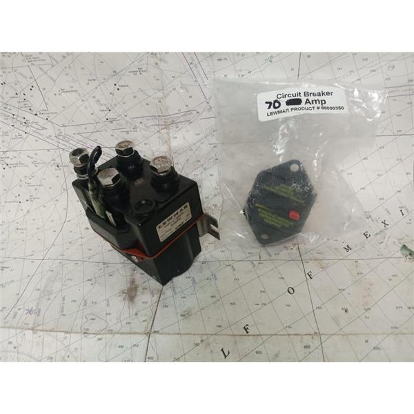 Boaters' Resale Shop of TX 2408 2141.05 LEWMAR WINDLASS SOLENOID (CONTACTOR)0062531 & 70A BREAKER ONLY * LEWMAR SOLENOID 0062531 & 70 AMP BREAKER 68000350 * SEE ALL 5 PHOTOS * SOLD IN CONDITION PICTURED * LEWMAR SOLENOID (CONTACTOR)0062531 WAS PREOWNED, USED, IS IN FAIRLY GOOD PHYSICAL CONDITION AND APPEARS TO BE OPERATING PROPERLY BUT HAS NOT BEEN TESTED FURTHER & LEWMAR 70 AMP BREAKER 0062531 WAS PREOWNED, IN ORIGINAL PACKAGE, IN GREAT PHYSICAL CONDITION AND APPEARS TO HAVE NEVER BEEN INSTALLED OR DEPLOYED AND HAS NOT BEEN TESTED