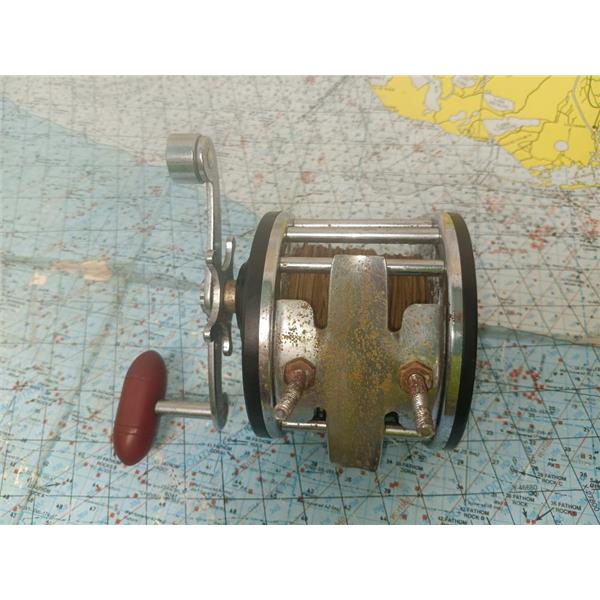 Boaters' Resale Shop of TX 2408 2142.01 PENN VINTAGE LONG BEACH 66 REEL w CRACK * DECORATIVE SIDE HAS A 3.5" CRACK * SEE ALL 7 PHOTOS * SOLD IN CONDITION PICTURED * ITEM WAS PREOWNED, USED, HAS CORROSION & 3.5" CRACK BUT NEITHER AFFECT OPERATION AND STILL APPEARS TO BE OPERATING PROPERLY