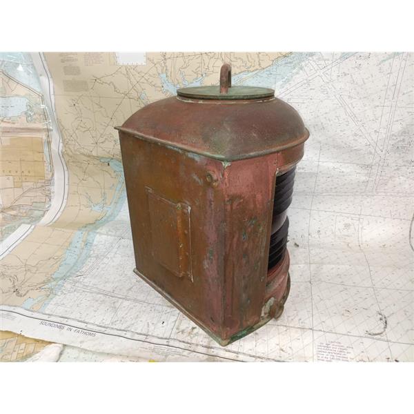 | Condition Description | VINTAGE BRASS PORT NAVIGATION LIGHT HOUSING with RED FRESNEL LENSES & HANDLE ONLY by PERKINS(PERKO) * SEE ALL 6 PHOTOS * SOLD IN CONDITION PICTURED * ITEM WAS PREOWNED, VINTAGE AND IS IN FAIR VINTAGE NAUTICAL CONDITION |