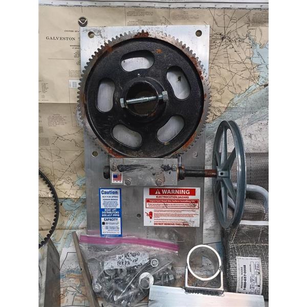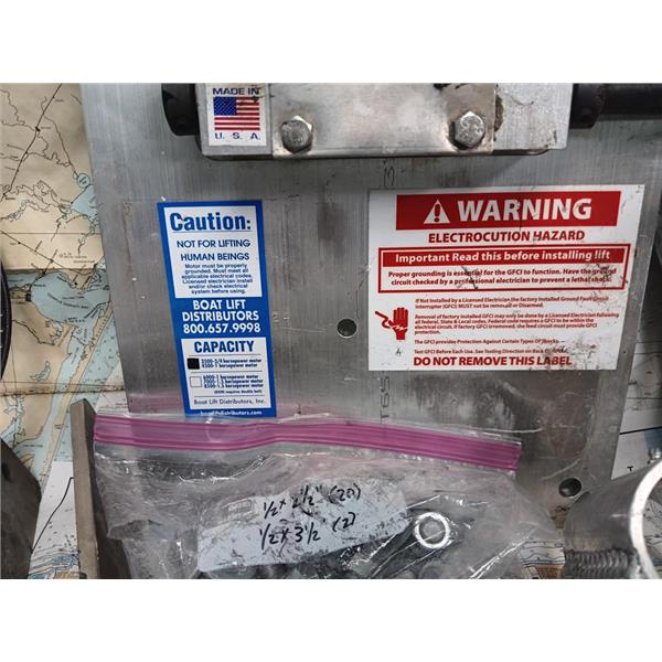 Boaters' Resale Shop of TX 2409 2547.01 BOAT LIFT PARTS-NEEDS MOTOR w 45OO LB CAPACITY * BOAT LIFT COMPONENTS FOR A 3500/4500 LB. CAPACITY BOAT LIFT SYSTEM APPEARS COMPLETE EXCEPT FOR THE 3/4 to 1 HORSEPOWER MOTOR FROM BOAT LIFT DISTRIBUTORS, INC. * 3/4 to 1 H.P. MOTOR NOT INCLUDED * SEE ALL 8 PHOTOS * SOLD IN CONDITION PICTURED * COMPONENTS WERE PREOWNED, USED, ARE IN FAIRLY GOOD PHYSICAL CONDITION AND APPEARS TO BE COMPLETE BUT HAS NOT BEEN TESTED DUE TO THE LACK OF THE MOTOR *