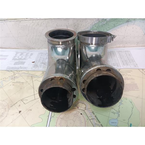 Boaters' Resale Shop of TX 2410 2144.07 STAINLESS STEEL EXHAUST MIXING ELBOWS * SEE ALL 6 PHOTOS * SOLD IN CONDITION PICTURED * ITEM WAS PREOWNED, USED, IS IN FAIRLY GOOD PHYSICAL CONDITION AND APPEARS TO BE OPERATING PROPERLY BUT HAS NOT BEEN TESTED FURTHER