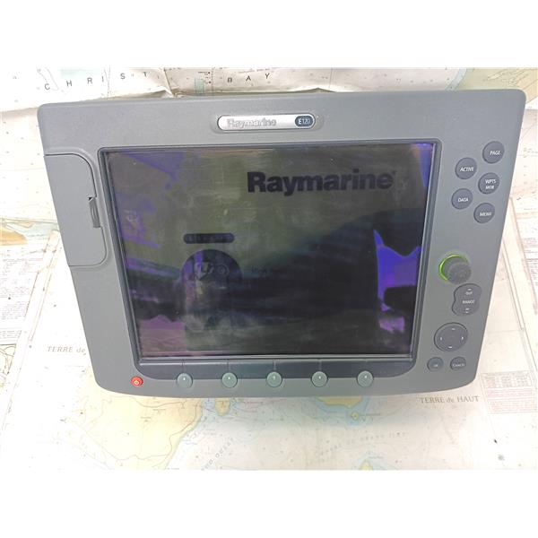 Boaters’ Resale Shop of TX 2411 0175.27 RAYMARINE E120 DISPLAY E02013 ONLY POWER CABLE & CHARTS NOT INCLUDED(FOR TESTING ONLY)* FOR PARTS ONLY * NO WARRANTY & NO RETURN * SOFTWARE VERSION: 5.52 * SEE ALL 6 PHOTOS * ITEM WAS PREOWNED, USED, IN FAIRLY GOOD PHYSICAL CONDITION, POWERS UP, DISPLAY COMES ON VERY FAINT BECAUSE OF THE LOW BACKLIGHT ISSUE (COMMON WITH THE RAYMARINE CLASSIC E120 DISPLAY) CONTROLS WORK BUT WILL NOT HELP WITH THE BACKLIGHT PROBLEM, WILL ALSO DISPLAY CHART CARD DATA FAINTLY AND HAS NOT BEEN TESTED FURTHER