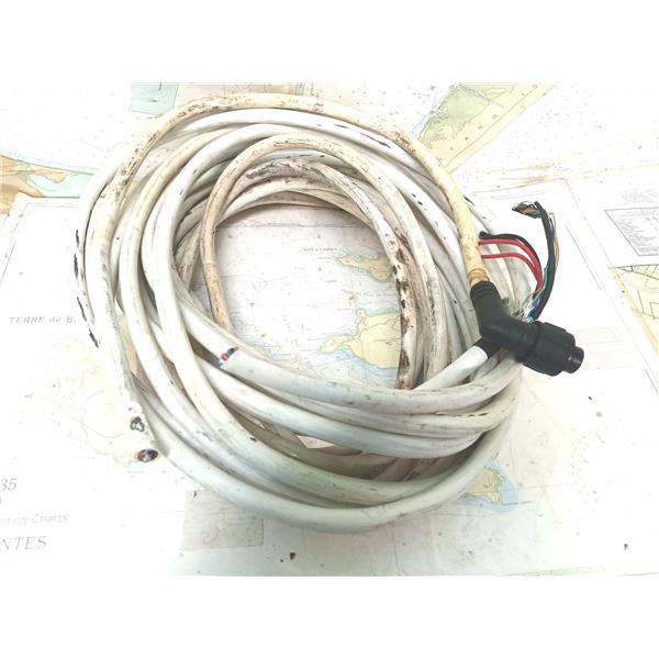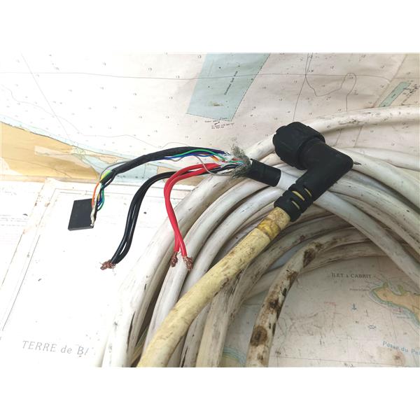 Boaters' Resale Shop of TX 2411 0175.37 RAYMARINE 50' ANALOG 4KW CUT RADAR CABLE * RAYMARINE 4KW ANAOLOG RADAR CABLE with DUAL POWER WIRES & RIGHT ANGLE (DISPLAY SIDE)PLUG * CABLE MEASURES 48' FOR THE LONG PIECE & 2' ON THE SHORTER DISPLAY SIDE * SEE ALL 6 PHOTOS * SOLD IN CONDITION PICTURED * ITEM WAS PREOWNED, USED, WILL REQUIRE REATTACHING THE WIRES COLOR TO COLOR BUT IS IN FAIR PHYSICAL CONDITION AND APPEARS TO BE OPERATING PROPERLY BUT HAS NOT BEEN TESTED FURTHER