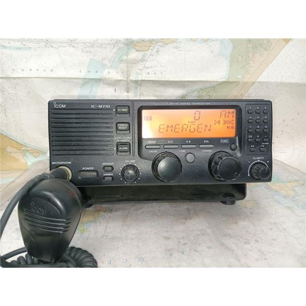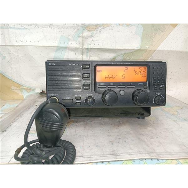 Boaters’ Resale Shop of TX 2411 2277.01 ICOM IC-M710 SSB TRANSCEIVER MAIN BASE UNIT with MICROPHONE, MOUNTING BRACKET & KNOBS ONLY * ICOM IC-M710 MARINE MF/HF TRANSCEIVER MAIN UNIT ONLY * AUTOMATIC ANTENNA TUNER & ANTENNA NOT INCLUDED * SEE ALL 8 PHOTOS * SOLD AS PICTURED * ITEM WAS PREOWNED, USED, IN GOOD PHYSICAL CONDITION, POWERS UP & CONTROLS APPEAR TO BE OPERATING PROPERLY BUT HAS NOT BEEN TESTED FURTHER