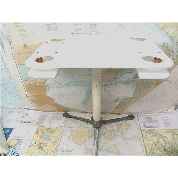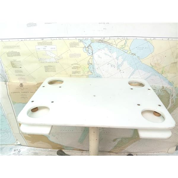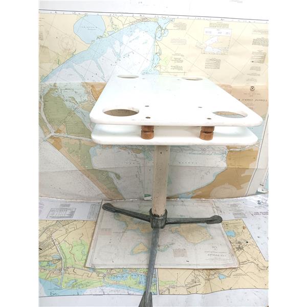 Boaters' Resale Shop of TX 2412 0575.02 TIDEE TABLE w PEDESTAL & FOLDING BASE PORTA-LEGS * TIDEE TABLE TOP w FOUR 3.25" CUP HOLDERS * APPROX. TABLE TOP DIMENSIONS: 2.25" H x 15.25" D x 22.5" W * APPROX. TOTAL HEIGHT: 25.25" * SEE ALL 8 PHOTOS * SOLD IN CONDITION PICTURED * ITEM WAS PREOWNED, USED, IS IN FAIR PHYSICAL CONDITION AND APPEARS TO BE OPERATING PROPERLY BUT HAS NOT BEEN TESTED FURTHER