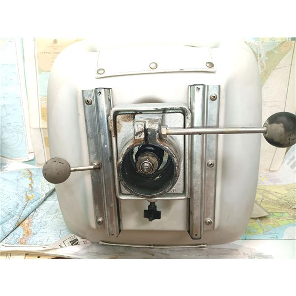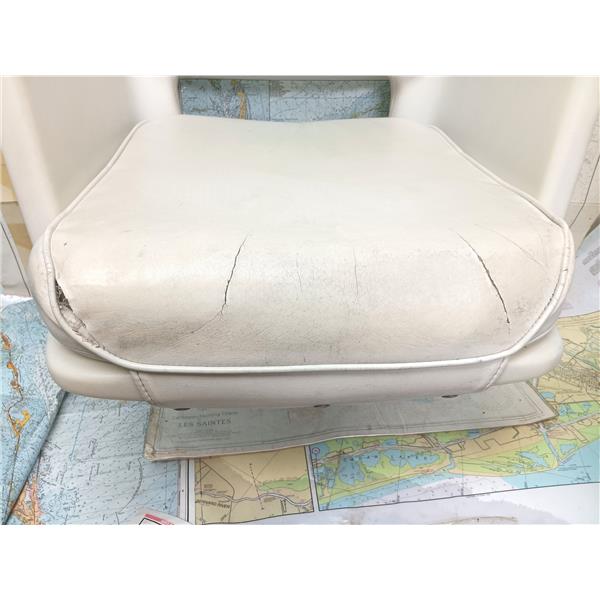 Boaters' Resale Shop of TX 2412 1242.01 TRACY HELM CHAIR w CUSHIONS & MOUNT ONLY * PEDESTAL NOT INCLUDED * SEE ALL 6 PHOTOS * SOLD IN CONDITION PICTURED * ITEM WAS PREOWNED, USED, HAS STAINS & MAJOR CRACKS IN THE UPHOLSTERY BUT IS IN FAIR NAUTICAL CONDITION AND APPEARS TO BE OPERATING PROPERLY BUT HAS NOT BEEN TESTED FURTHER