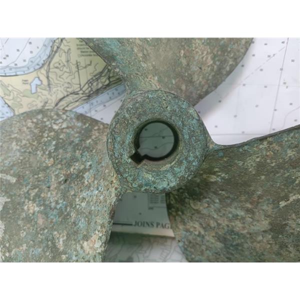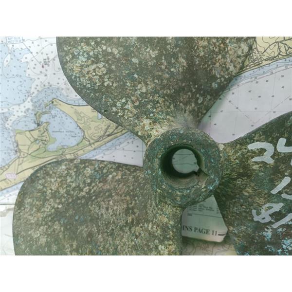 Condition Description | SEE ALL 4 PHOTOS & DETAILS * SOLD IN CONDITION PICTURED * ITEM WAS PREOWNED, USED, SHOWS TYPICAL SIGNS OF WEAR FROM USE AND WEATHER BUT THE BLADES ARE IN FAIR NAUTICAL PHYSICAL CONDITION AND APPEARS TO BE OPERATING PROPERLY BUT HAS NOT BEEN TESTED FURTHER SPECS * BRONZE * 3 BLADE * 13" DIAMETER * 11 PITCH * RIGHT HAND ROTATION * SHAFT DIAMETER: 1" * APPROX. WEIGHT: 6 LBS |