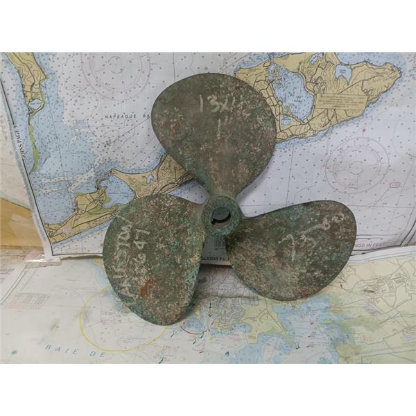 Boaters' Resale Shop of TX 2412 5521.77 BRONZE 3 BLADE 13RH11 PROP FOR 1" SHAFT * SEE ALL 4 PHOTOS & DETAILS * SOLD IN CONDITION PICTURED * ITEM WAS PREOWNED, USED, SHOWS TYPICAL SIGNS OF WEAR FROM USE AND WEATHER BUT THE BLADES ARE IN FAIR NAUTICAL PHYSICAL CONDITION AND APPEARS TO BE OPERATING PROPERLY BUT HAS NOT BEEN TESTED FURTHER