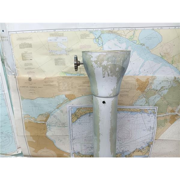 Boaters' Resale Shop of TX 2501 0254.05 YACHT SPECIALTIES 30" STEERING PEDESTAL with BRAKE MECHANISM, 1" STEERING WHEEL SHAFT & NUT * TOP DIAMETER: 7" * BASE DIMENSIONS: 9.25" D x 10.5" * APPROX. WEIGHT: 17.5 LBS * STEERING WHEEL & CABLES NOT INCLUDED * SEE ALL 6 PHOTOS * SOLD IN CONDITION PICTURED * ITEM WAS PREOWNED, USED, VINTAGE BUT IS IN FAIR PHYSICAL CONDITION AND APPEARS TO BE OPERATING PROPERLY BUT HAS NOT BEEN TESTED FURTHER