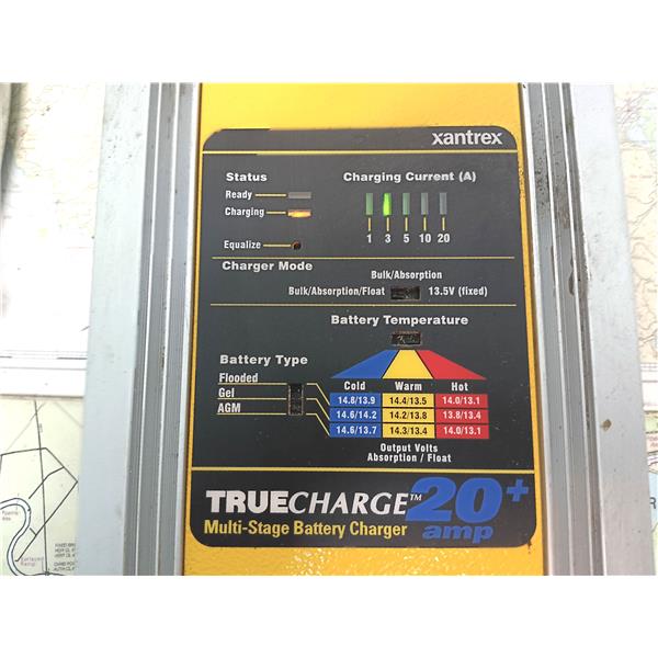 Boaters’ Resale Shop of TX 2501 0254.21 XANTREX TRUECHARGE 20+ BATTERY CHARGER * 20 AMPS * 3 BANKS * SEE ALL 6 PHOTOS * SOLD AS PICTURED * ITEM WAS PREOWNED, USED, IN FAIR PHYSICAL CONDITION, POWERS UP, CHARGE VOLTAGE IS PRESENT AT ALL 3 BANKS AND APPEARS TO BE OPERATING PROPERLY BUT HAS NOT BEEN TESTED FURTHER