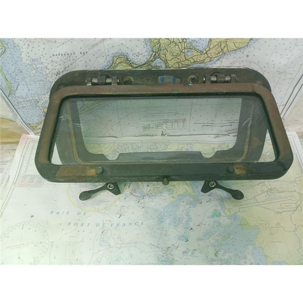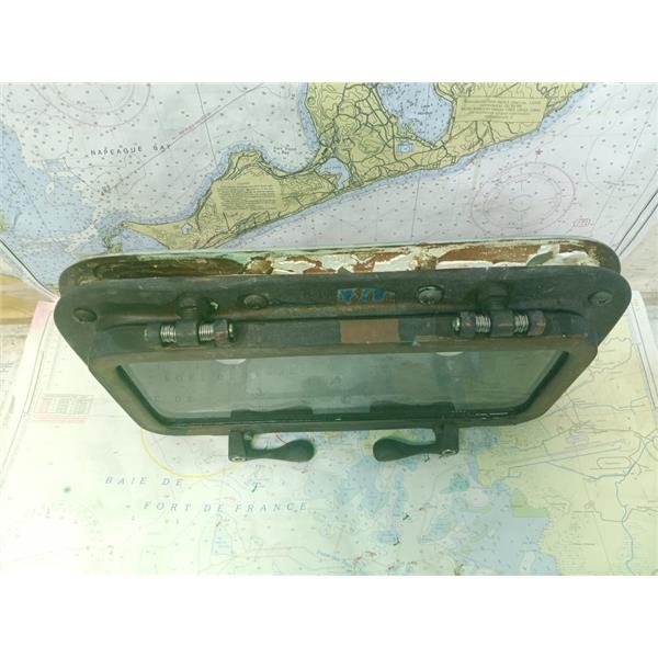 Boaters' Resale Shop of TX 2501 0254.62 BRONZE 8" x 15" PORTLIGHT with TRIM * UNBRANDED BRONZE SPRING-LOADED OPENING PORT-LIGHT with TRIM, SCREWS AND CLEAR LENS * SEE ALL 7 PHOTOS & DETAILS * SOLD IN CONDITION PICTURED * ITEM WAS PREOWNED, USED, SHOWS TYPICAL SIGNS OF INSTALLATION, REMOVAL, WEAR FROM USE AND WEATHER BUT IS IN FAIR NAUTICAL PHYSICAL CONDITION AND HINGES, SPRINGS & DAWGS APPEAR TO BE OPERATING PROPERLY BUT HAS NOT BEEN TESTED FURTHER
