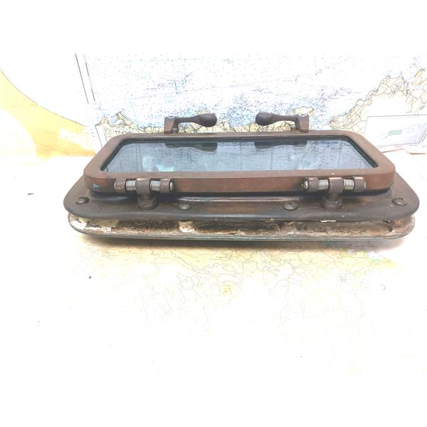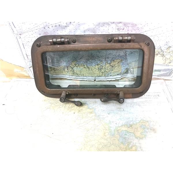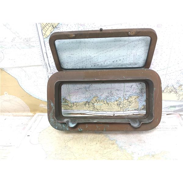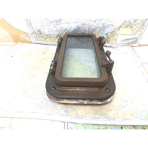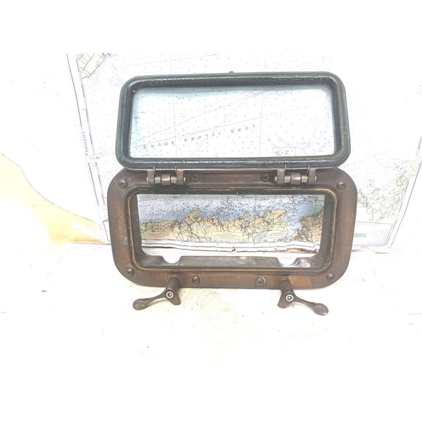 Boaters' Resale Shop of TX 2501 0254.65 SPRING LOADED BRONZE 8" x 15" PORTLIGHT with MOUNTING BACK PLATE * BRONZE SPRING LOADED OPENING PORTLIGHT with MOUNTING BACK PLATE & 8 SCREWS ASSEMBLY * SEE ALL 7 PHOTOS * SOLD IN CONDITION PICTURED * ITEM WAS PREOWNED, USED, IS IN FAIR PHYSICAL (WORKING)CONDITION AND APPEARS TO BE OPERATING PROPERLY BUT HAS NOT BEEN TESTED FURTHER
