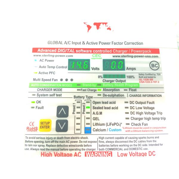 * Includes LiFePO 4 GEL AGM Calcium Flooded Lead Acid plus custom user programmable battery charge profile.